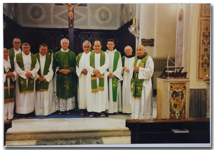 A sinistra trovate Don Gennaro, al centro con la divisa da Alpino c'è Don Carmine Dattero Cappellano Militare, sotto di lui c'è Padre Vito del convento dei Francescani a Materdomini, a destra Padre Silverio Floris.