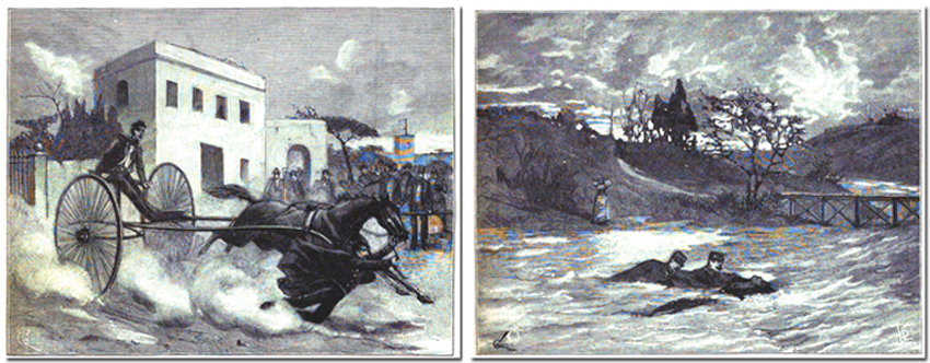 Come si può ben vedere dai disegni dell' epoca, si ricorda al lettore che siamo nel 1884 e la fotografia ha ancora dei costi proibitivi essendo stata inventata da poco, gli interventi dei Carabinieri Reali sono dei veri e propri atti di eroismo, considerando anche i mezzi a loro disposizione .