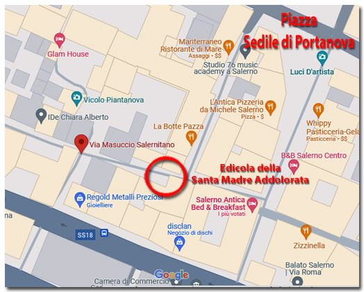 sorge una sacra edicola con l'immagine della Santa Madre Addolorata. Fin dalla metà del 1944 essa è adorna di voti e contornata da centinaia di fotografie appartenenti ai giovani che, essendo lontani, prigionieri o combattenti o rapiti dai Tedeschi, desiderano trovarsi almeno in spirito, accanto alla Regina dei mesti, per implorare protezione.
