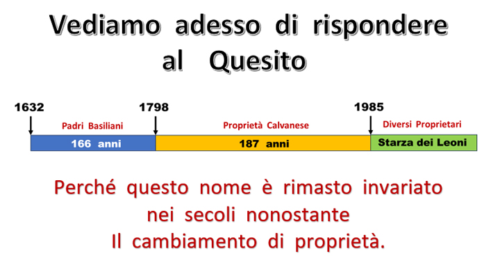 Nonostante il passaggio della proprietà al ricco Signore Carmine Calvanese, di Taverna Casalnuovo, proprietà trasferita nel 1798, è bastato a cancellare il loro ricordo e la loro fattiva presenza nella Starza, che da sempre è stata indicata come Starza dei Leoni .